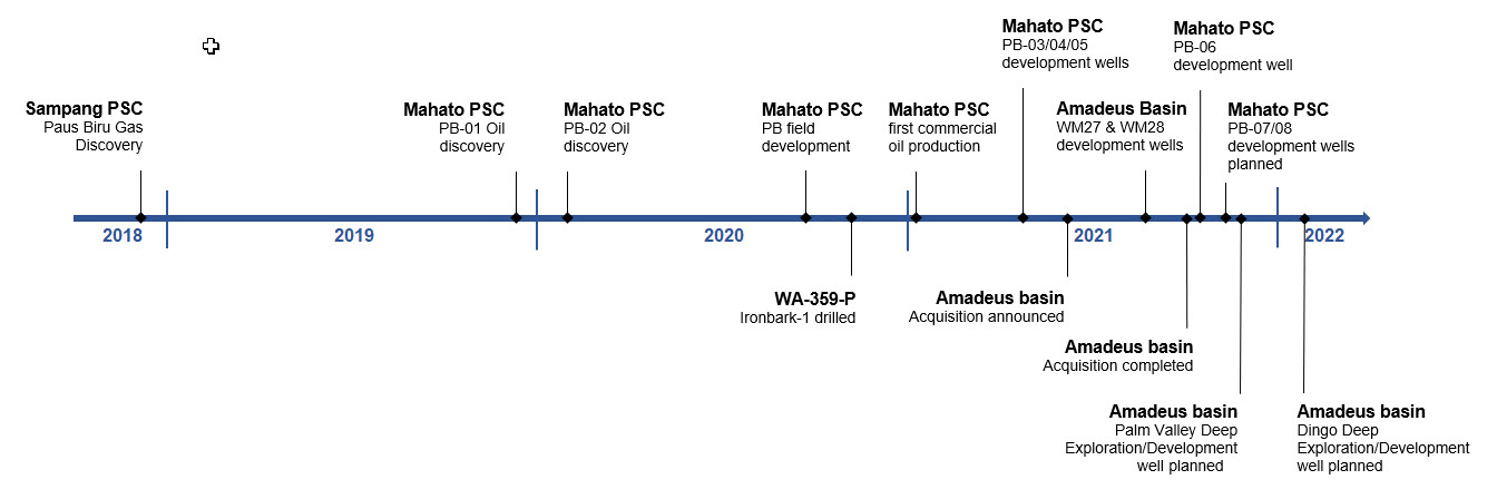 The PB oilfield in the Mahato PSC started production as a result of successful exploration in 2019. Cue recognised the potential for this area when its interest was acquired in 2015.