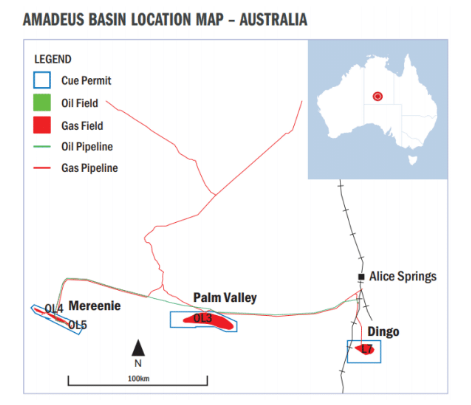 Cue has interests in three production assets, Mereenie, Palm Valley, and Dingo Fields, situated in the Amadeus Basin within onshore Northern Territory. These assets were acquired from Central Petroleum, with the acquisition process finalised on 1 October 2021, and an effective date of 1 July 2020.